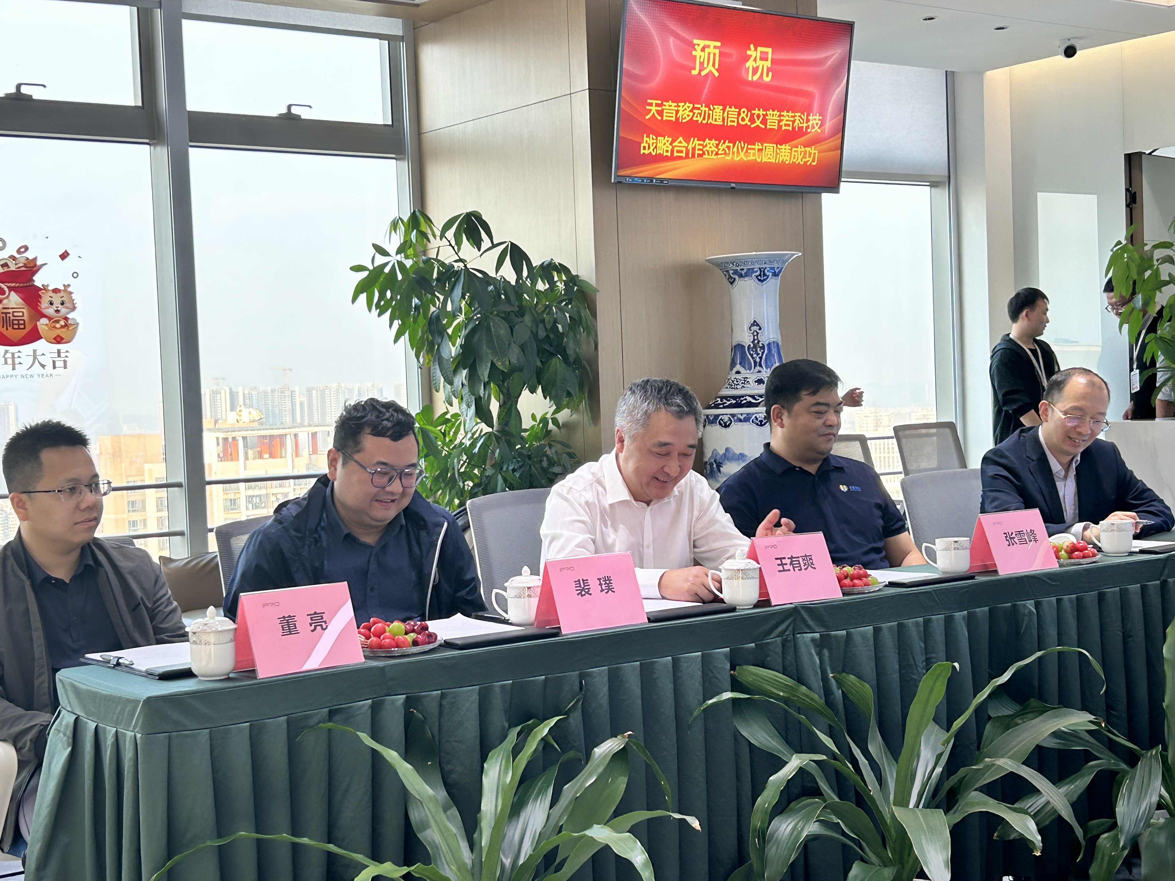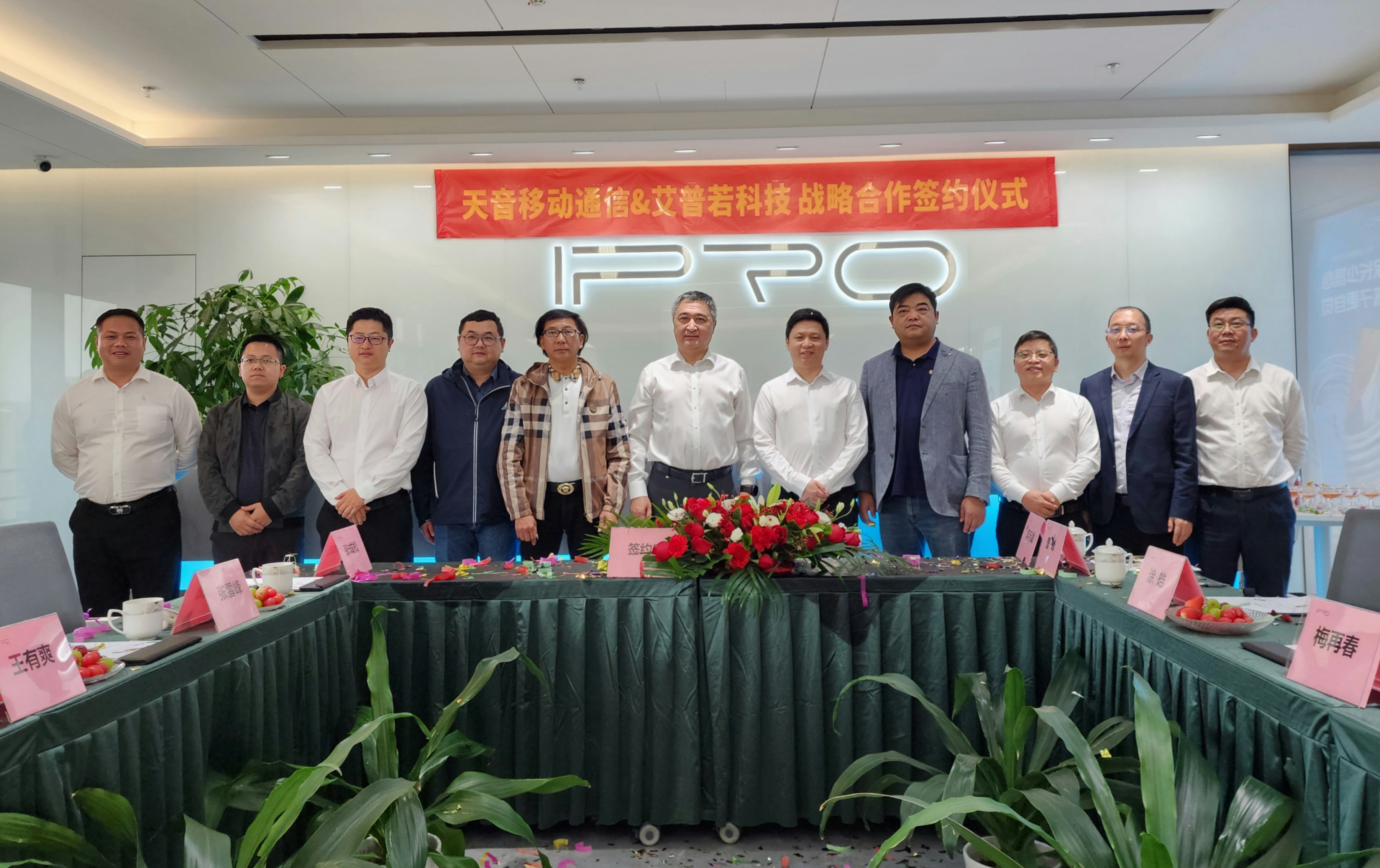 Wang Youshuang, President of Tianyin Mobile Communication, Zhang Xuefeng, General Manager of New Product Department, Pei Pu, Chief Financial Officer, Zhang Chengsong, Product Manager of New Product Department and Dong Liang, Financial Manager of Tianyin Mobile Communication. IPRO Chairman Mei Zaichun, Vice Chairman Tu Hao, Chief Operating Officer Gong Jitang, Vice President Guo Qinbin, General manager and Assistant President Cao Feng, and Chief Financial Officer Wang Xiqiao attended and witnessed the signing ceremony of strategic cooperation.