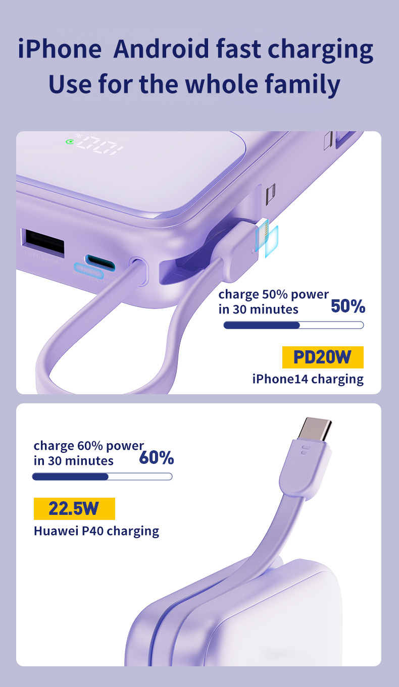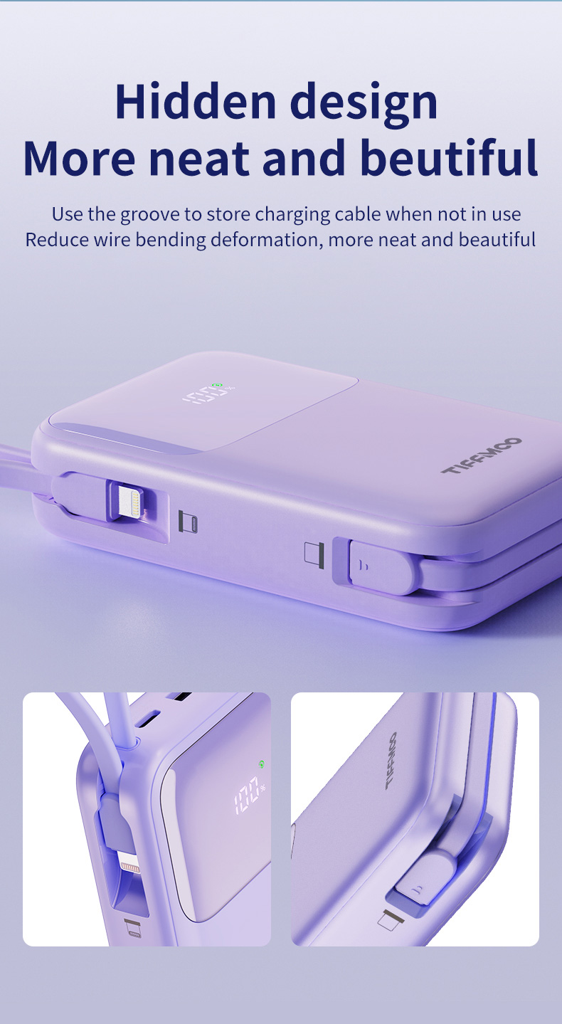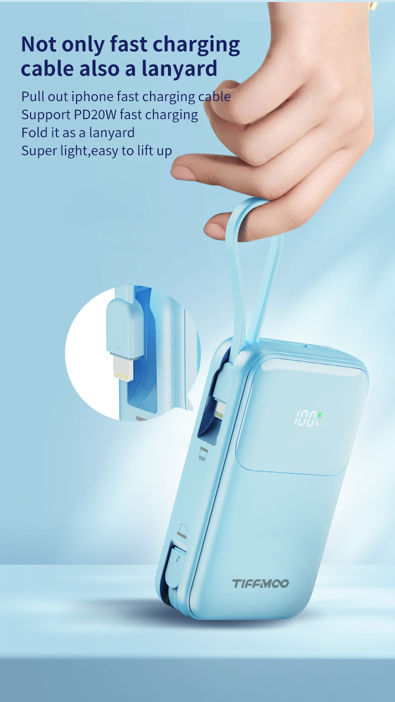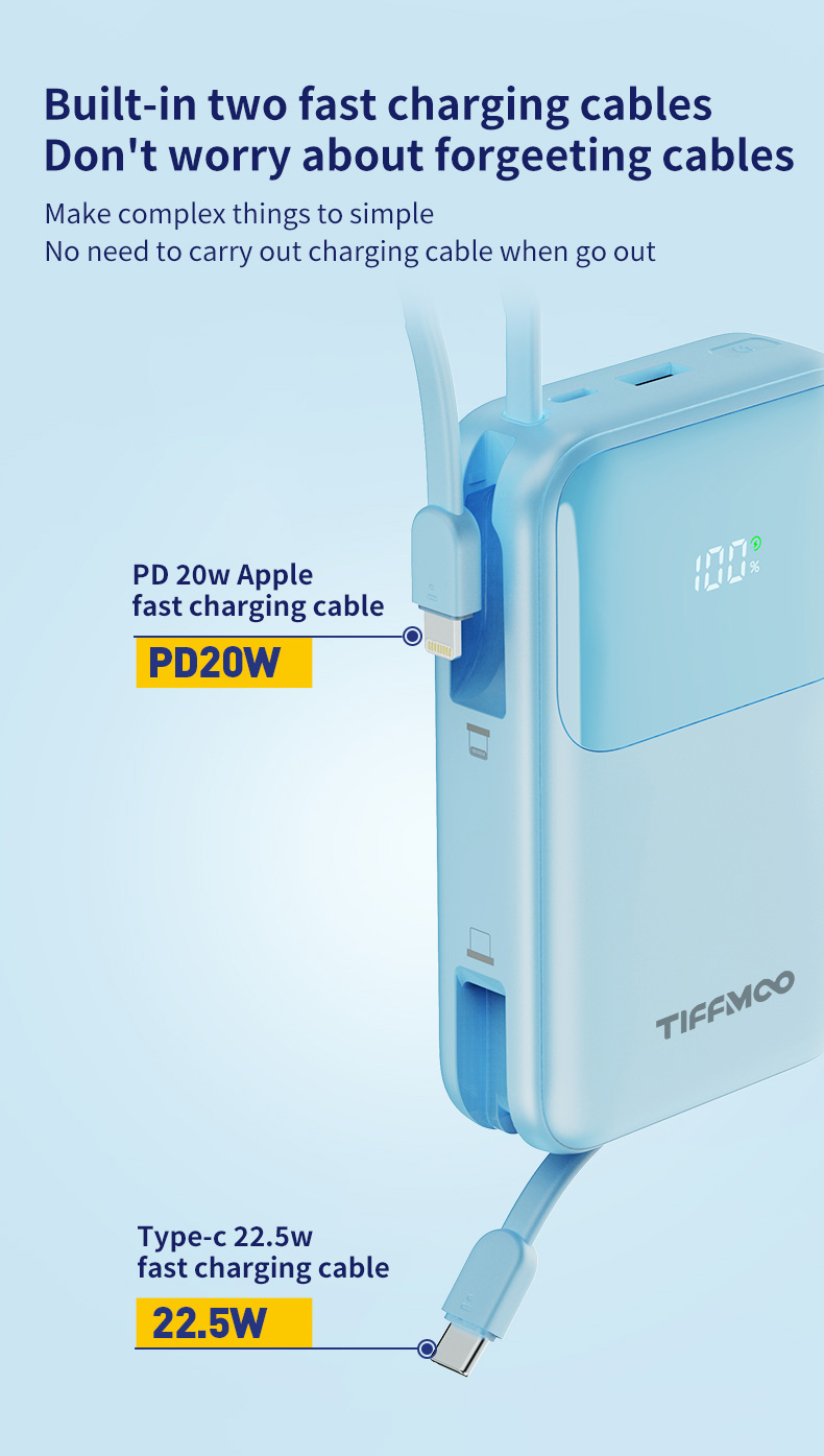 Bulit-in Two cables (Type C and iOS Lightning)