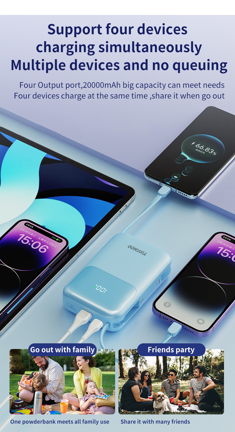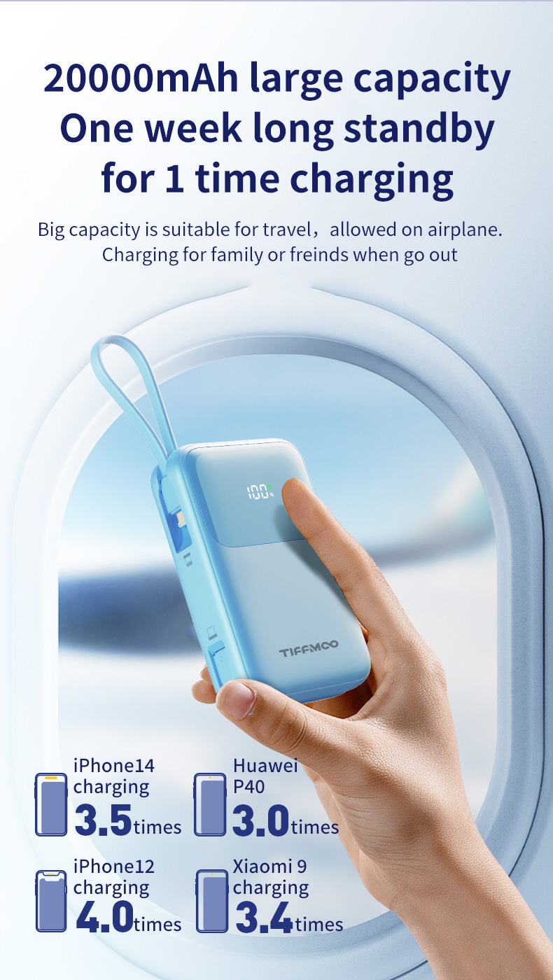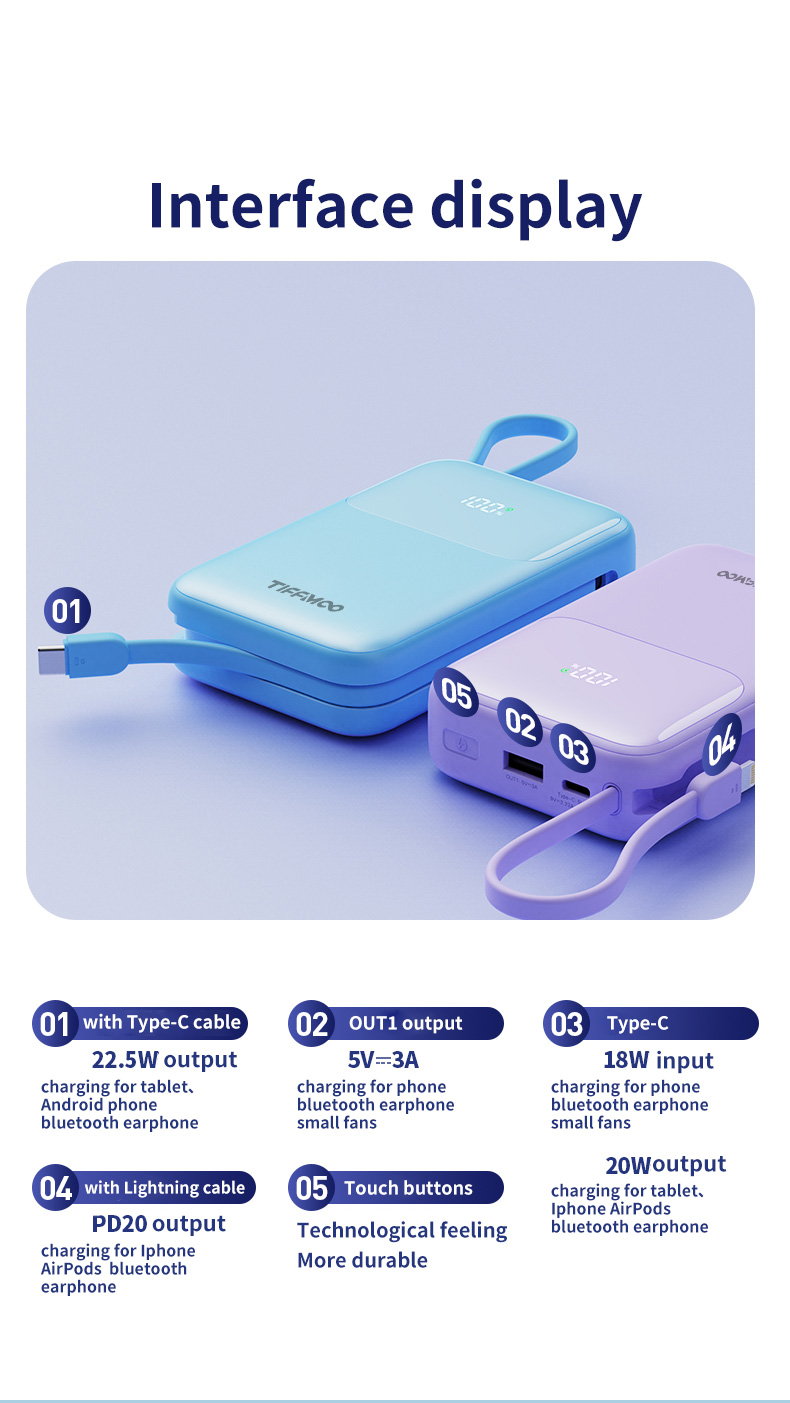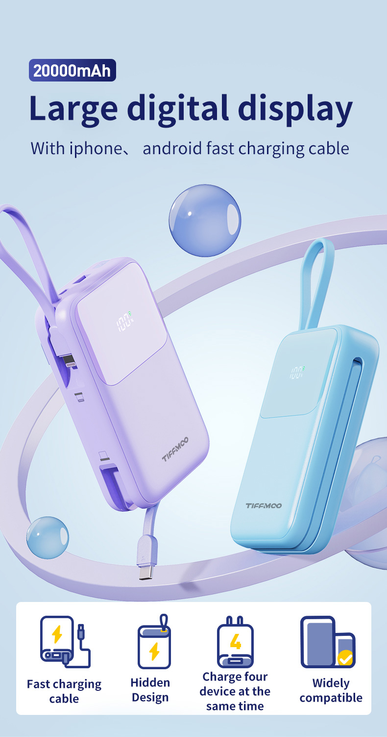 Bulit-in Two cables (Type C and iOS Lightning)