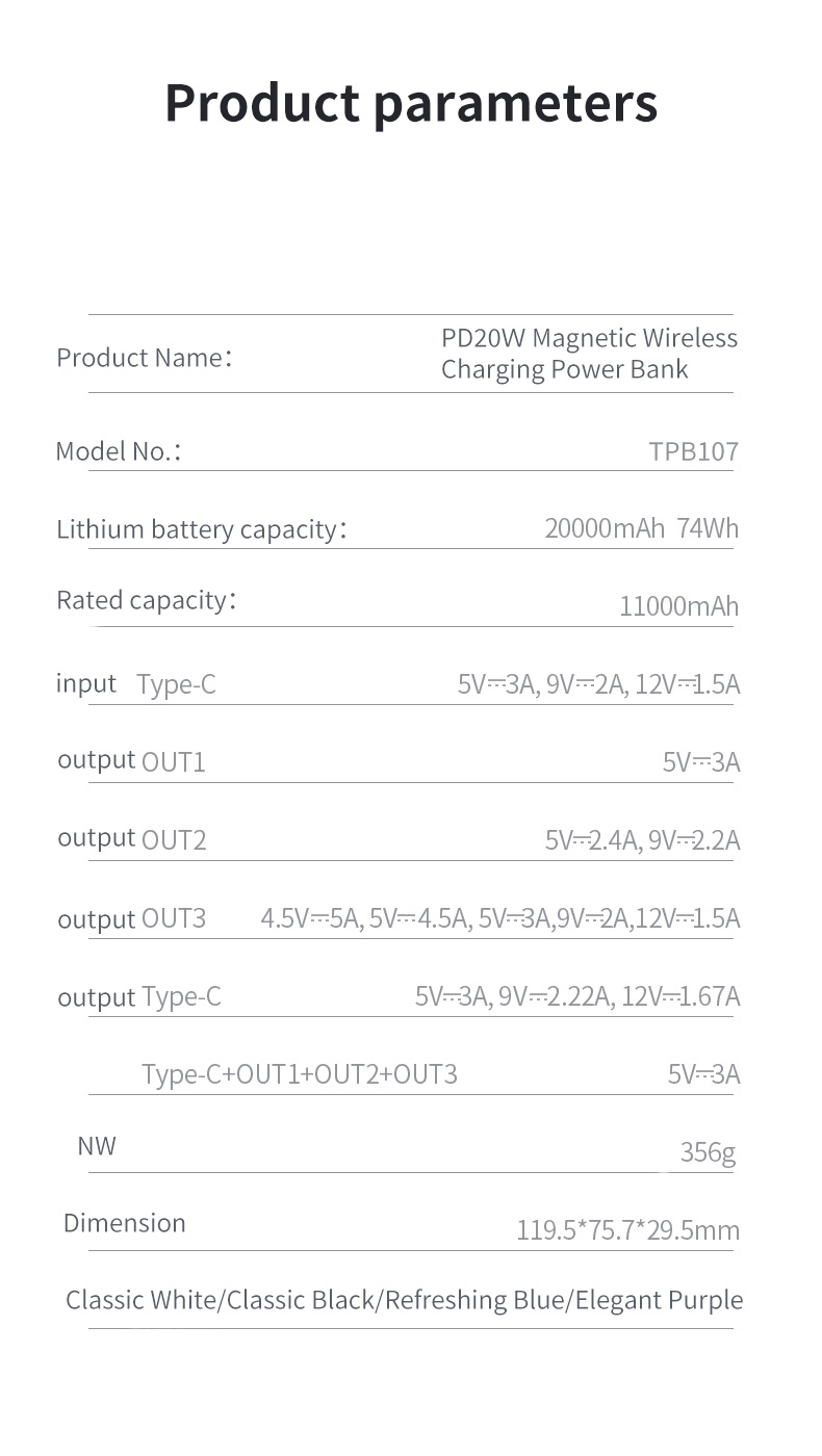 Output: Type C:5V⎓3A, 9V⎓2.22A, 12V⎓1.67A