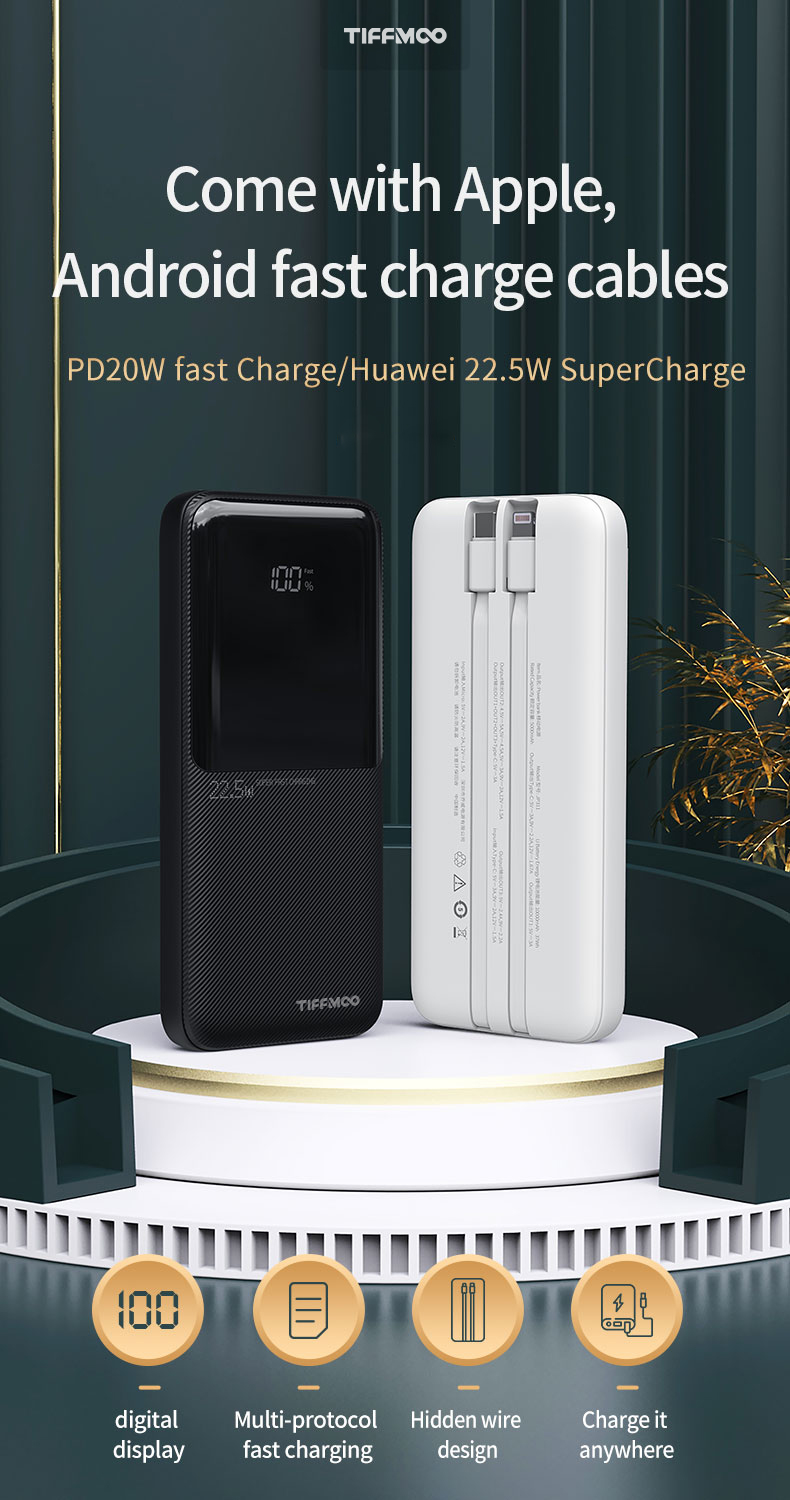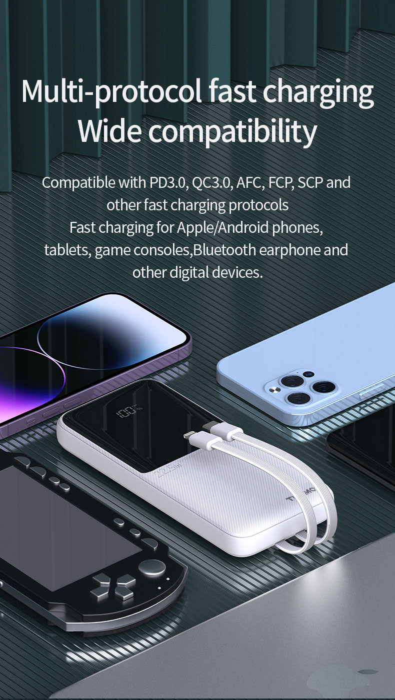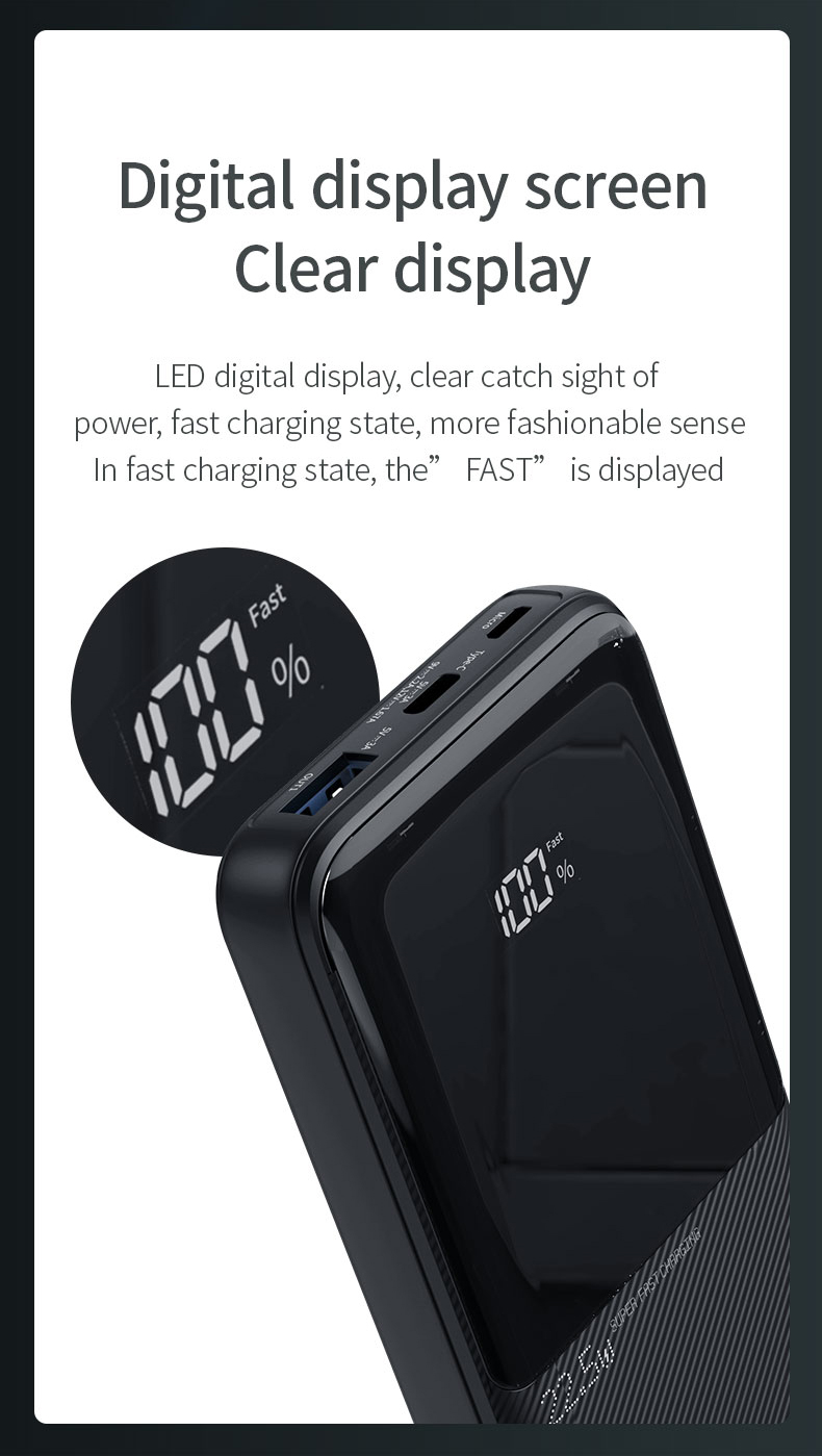 22.5W PD Power Bank 10000 mah portable smart LCD digital display multi compatible 10000 mah Fast power Bank