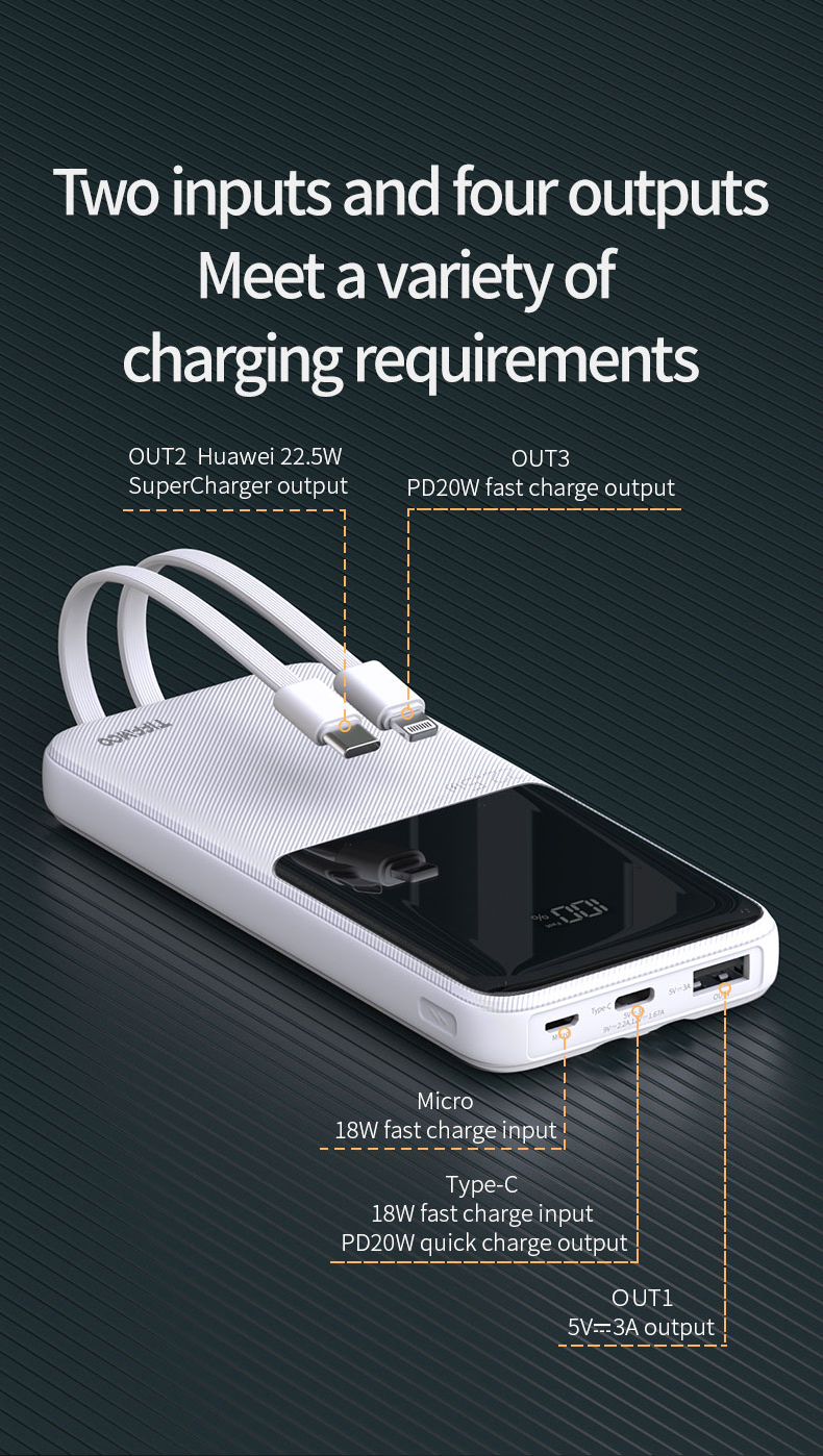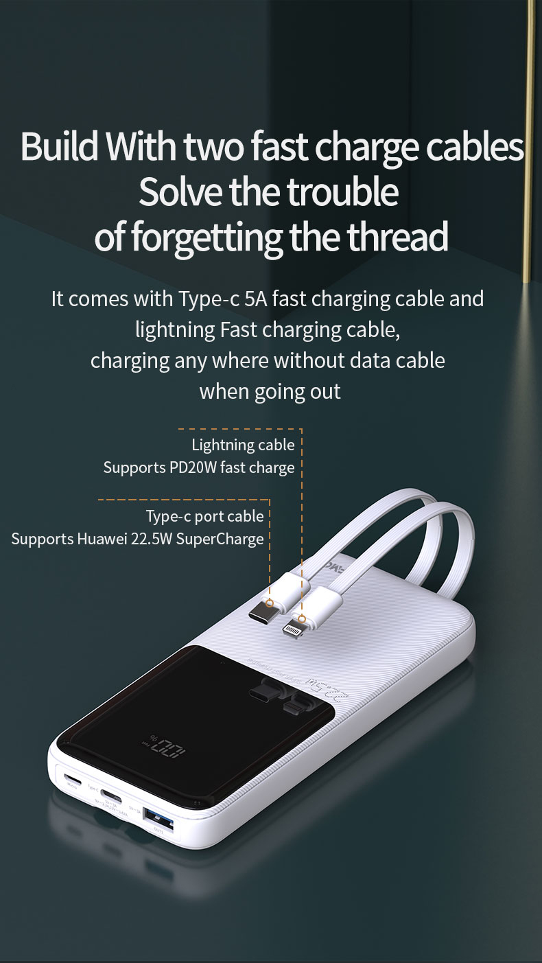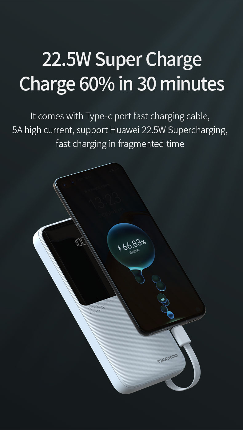 22.5W PD Power Bank 10000 mah portable smart LCD digital display multi compatible 10000 mah Fast power Bank