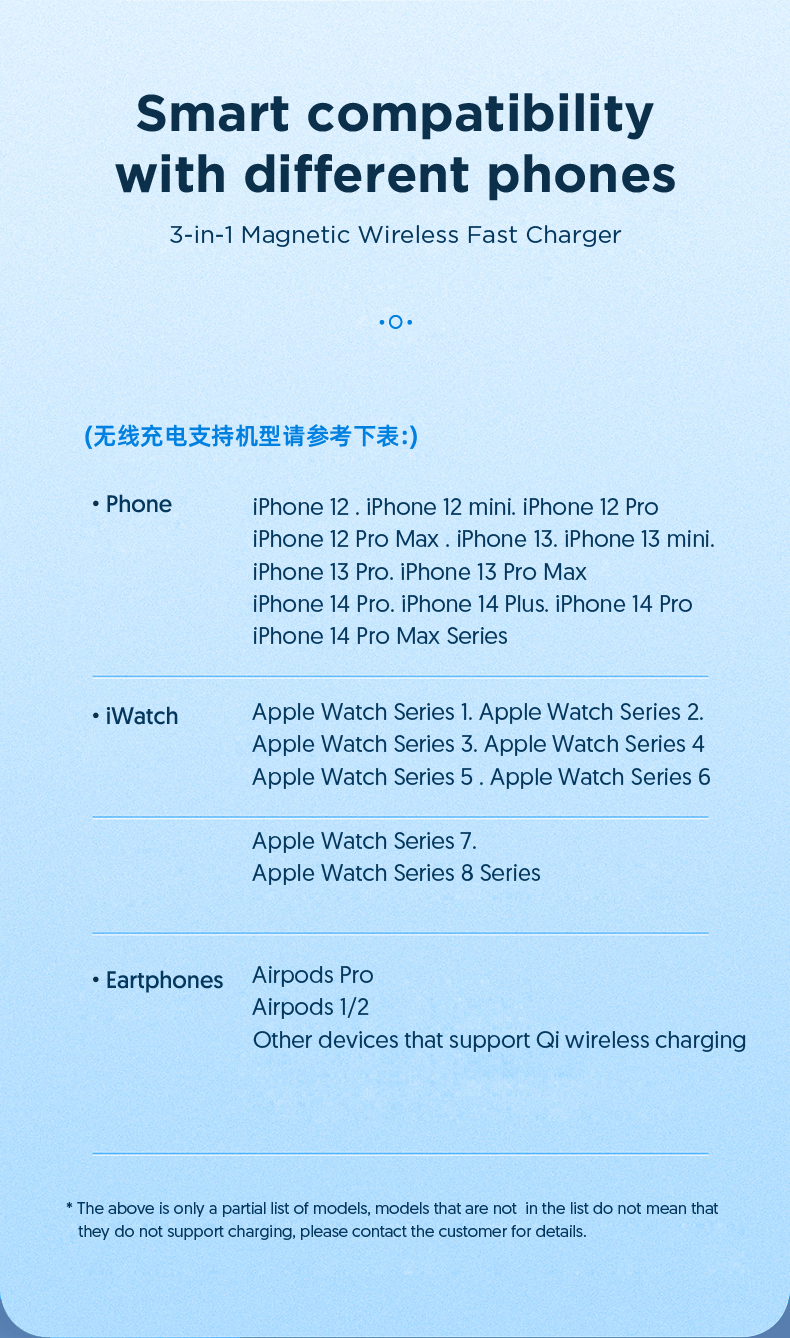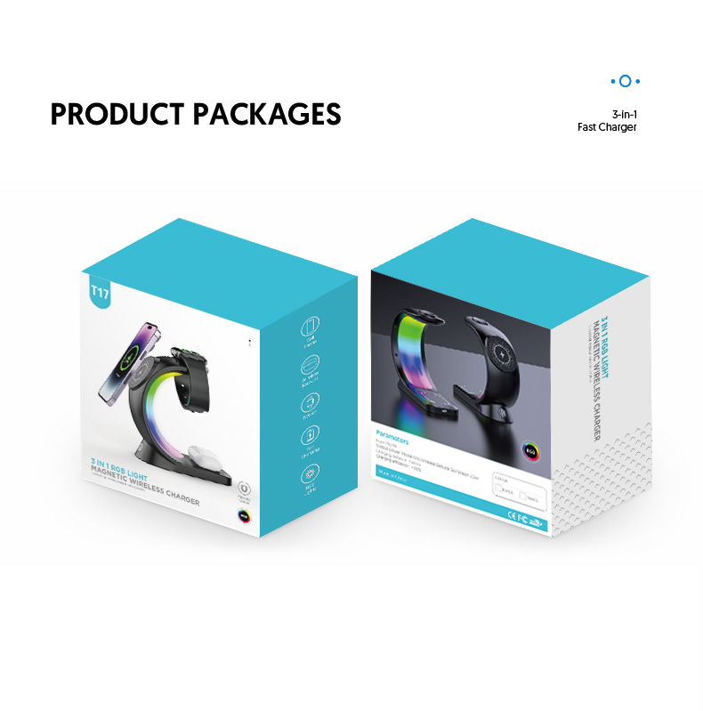 2024 Factory Wholesale 3-in-1 magnetic wireless charging station base Touch RGB light 15W fast charger base