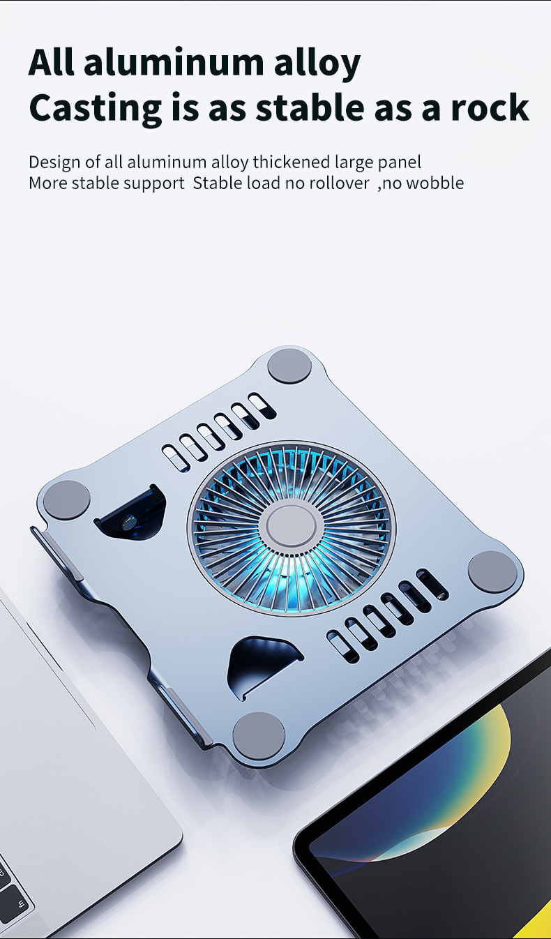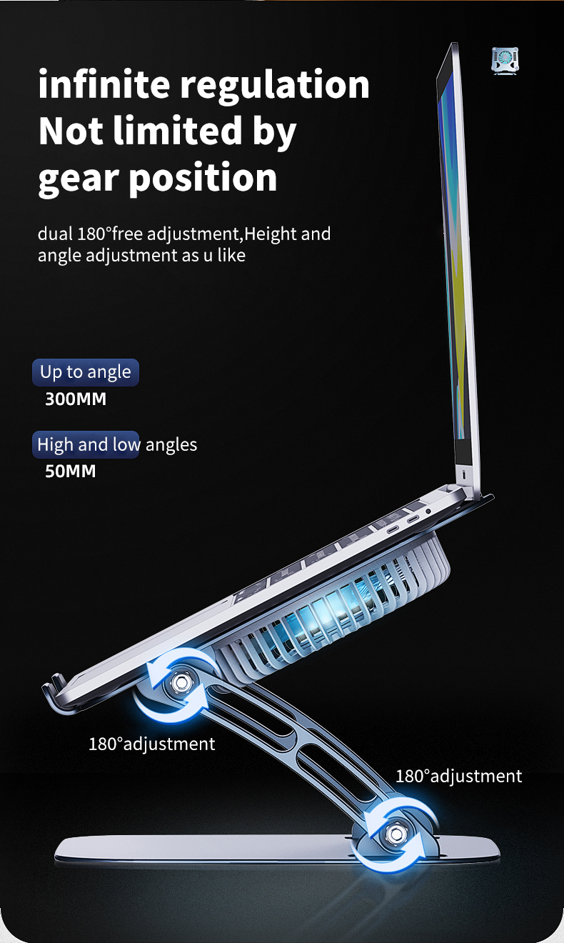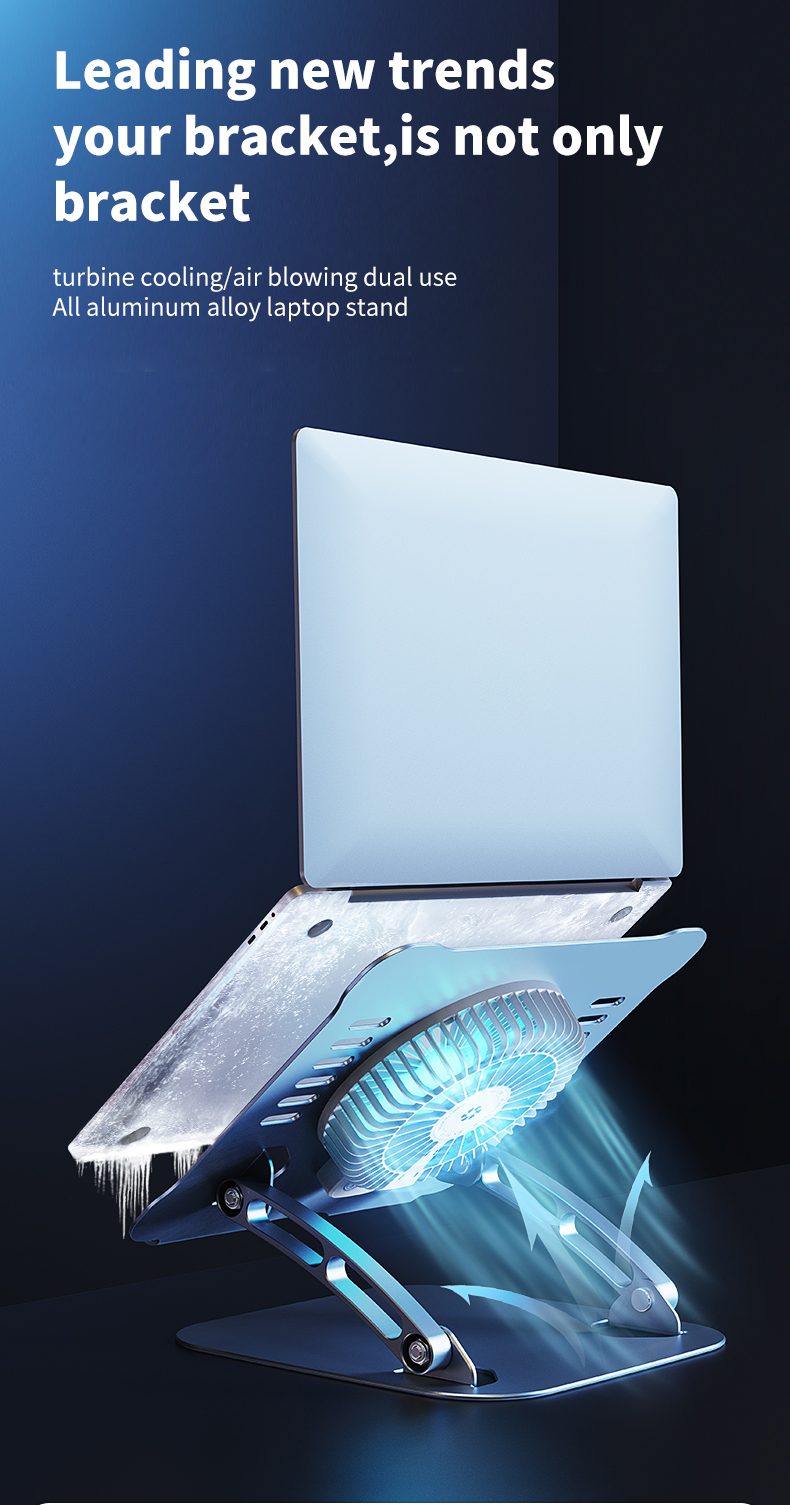 Hot selling ergonomic adjustable laptop stand Metal aluminum cooling fan Laptop cooling stand