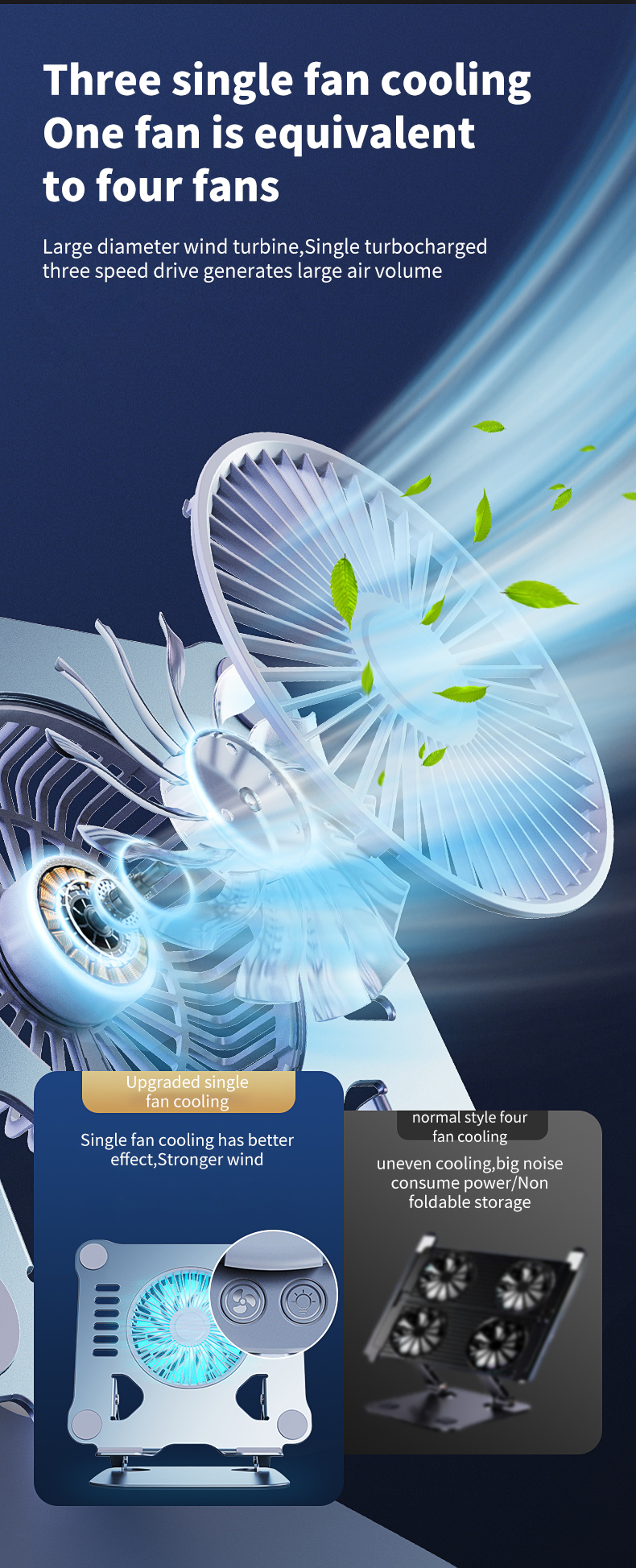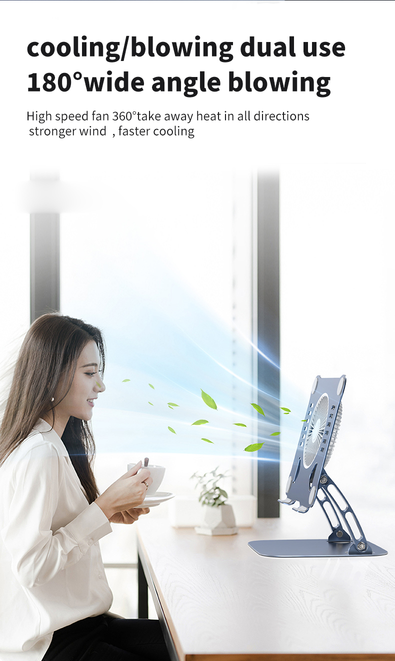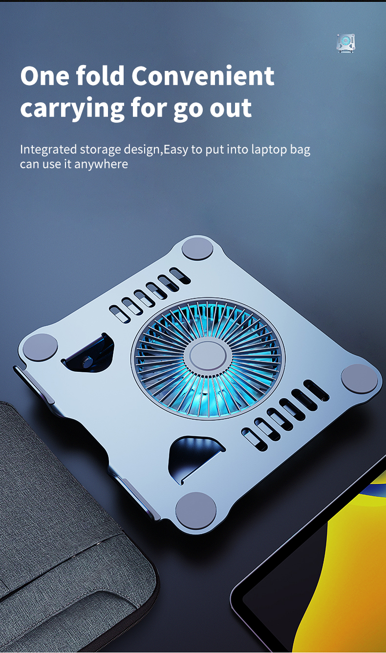 Hot selling ergonomic adjustable laptop stand Metal aluminum cooling fan Laptop cooling stand