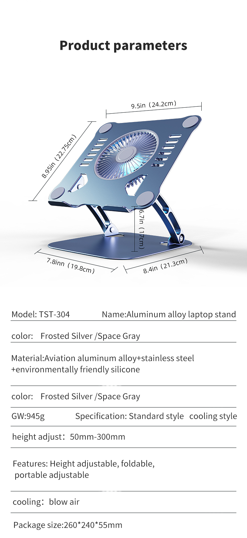 Functions: adjustment height and Angle and cooling