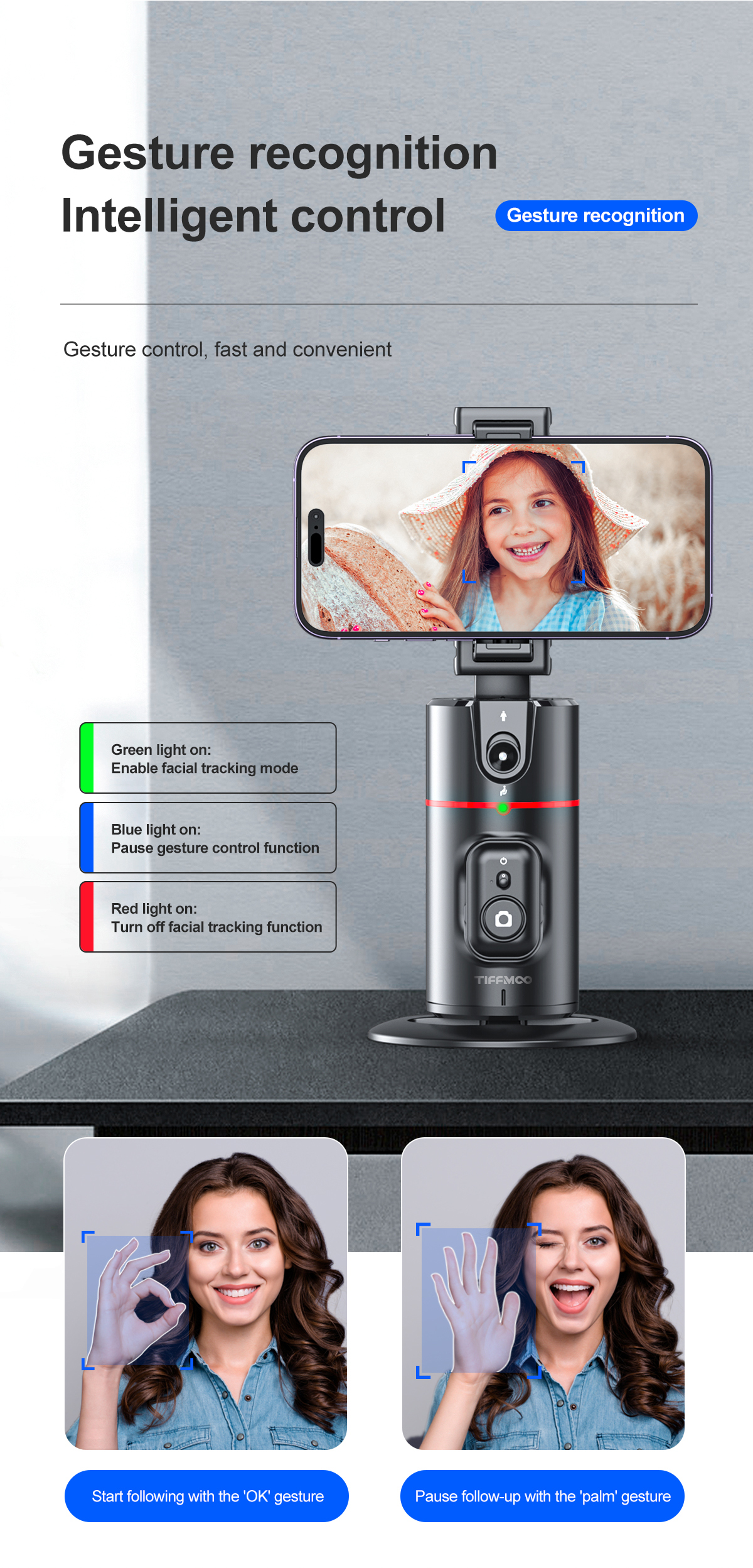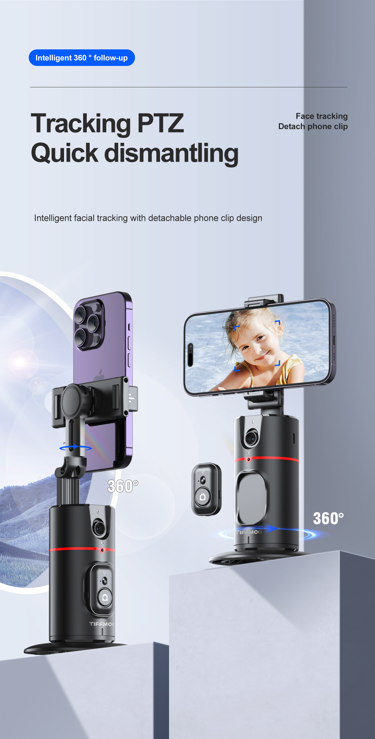 TIFFMOO 360 Rotary Automatic Face tracking Mobile shutter phone tripod selfie stick