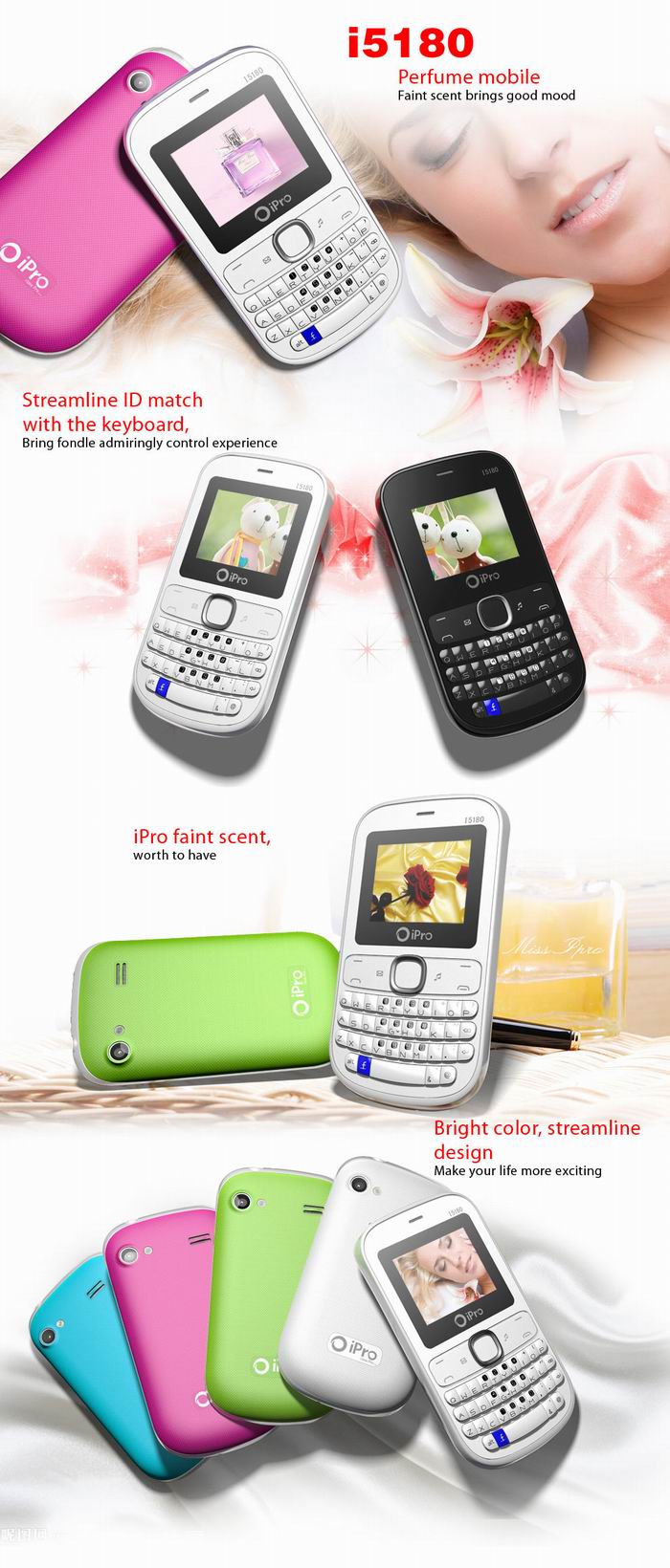 ( May--2012) iPro company first model target to low end phone market ,1.8inch screen ,full keyboard phone ,take up the market at soon for its'cheap price and beautiful appearance .